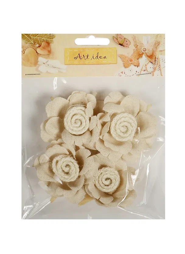 Букетик Льняные розы с холщевой серединой (4шт) (11-00399-SC-220)
