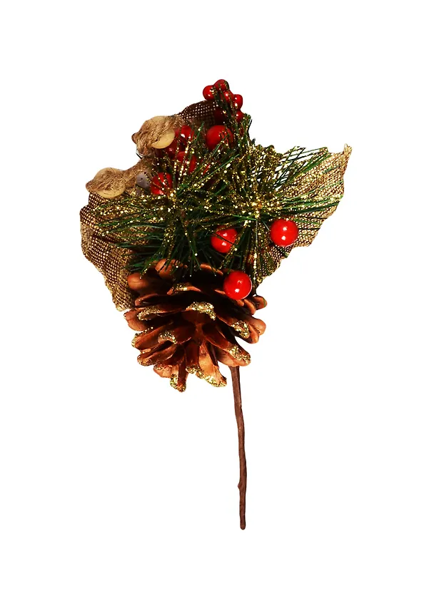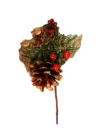 Букетик в пакете с подвесом, красные ягодки с позолоченной шишкой и спиралями с бусинками (11-