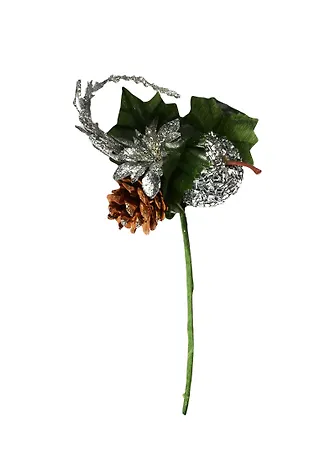 Декоративный букетик станет достойным украшением не только праздничной елки, но и стен комнат, штор и других элементов интерьера. Изделие Вам поможет волшебным образом подготовить Ваш дом к новогоднему торжеству. Упаковка: пакет Размер: 20*19*3см