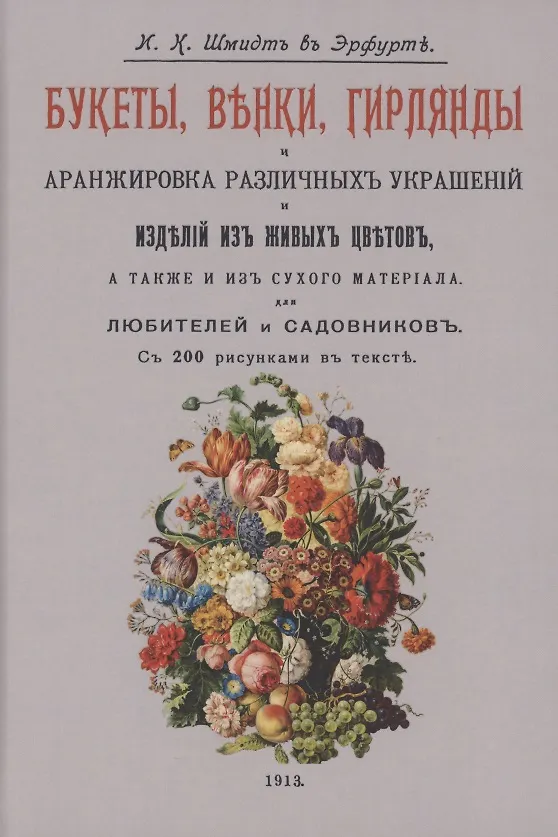 Книга Шмидта стала первым руководством по флористике на русском языке. Ее можно назвать настоящей энциклопедией искусства аранжировки. В книге представлена техника изготовления всех основных флористических изделий из живых цветов: букетов, корзин, венков, гирлянд, свадебных гарнитуров и т. д. Даны рекомендации по украшению праздничного стола, оформлению окон и витрин, правильной упаковке готовых работ. Предложен большой ассортимент зелени для аранжировки изделий. Эта практическая книга, вышедшая почти 100 лет назад, до сих пор представляет большую ценность для специалистов.