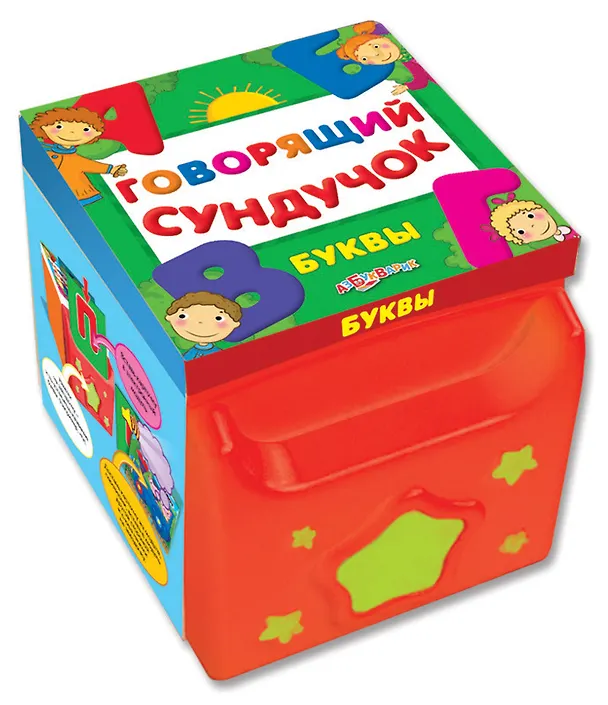 Этот сундучок идеально подходит для активного обучения алфавиту! В нём вы найдете 30 говорящих карточек с буквами и словами! Чтобы карточка заговорила, ее надо вставить в специальный пластмассовый «кармашек» на сундучке и нажать на яркую кнопку-звёздочку. Карточки можно вставлять обеими сторонами: с одной стороны озвучиваются буквы, с другой – слова-примеры и забавные звуки.