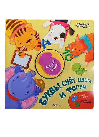Знакомься с буквами, цифрами, цветами и формами! Поворачивай говорящую стрелочку - и запоминай их! В этом тебе помогут яркие картинрки и интересные стихи. А ещё тебя ждёт сюрприз - 5 забавных мелодий!