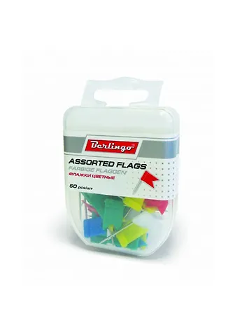 Булавки 50шт флажки цветные, пл/уп., Berlingo