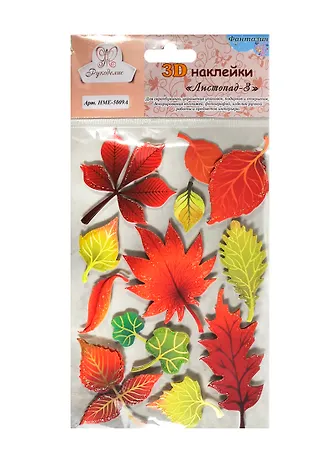 Бум. стикеры с кл. осн. на картон. подлож. 3D Накл. Листопад-3 (HME-5009A) (Рукоделие) (упаковка)