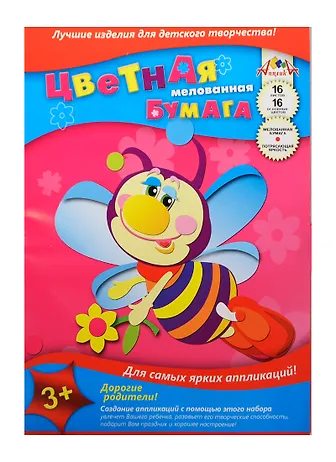 Бумага цветная 16цв 16л А4 мелованная, на скрепке, ассорти, Апплика