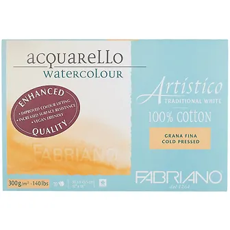 Бумага для акварели "Artistico Traditional White", 20 листов, склейка по 4 сторонам, FABRIANO.
