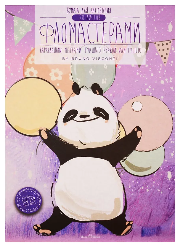 Плотность бумаги 160г/м2, а не 200. И это оказалось плюсом, ибо такую бумагу можно использовать в принтере. Бумага белая и гладкая. Фломастеры и карандаши отлично ложатся. Маркеры могут немного просвечивать, поэтому желательно рисовать на подложке.