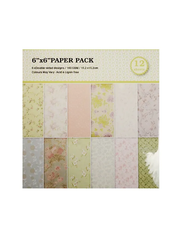 Бумага для скрапбукинга 15*15см (15,2*15,2см) (двусторонняя) (12 дизайнов) (12 листов) May Vary