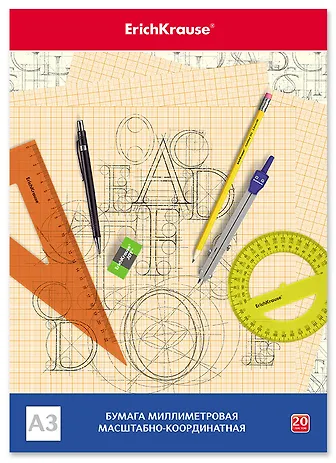 Бумага масштабно-координатная формата А3 (297х420 мм). 20 листов. Папка из плотного картона, которая удобна для хранения и переноски выполненных работ. Бумага плотностью 80 г/м2. Цвет координатной сетки - светло-оранжевый. Предназначена для чертежных, графических и дизайнерских работ. Бумага масштабно-координатная упакована в термоусадочную пленку по 10 штук.