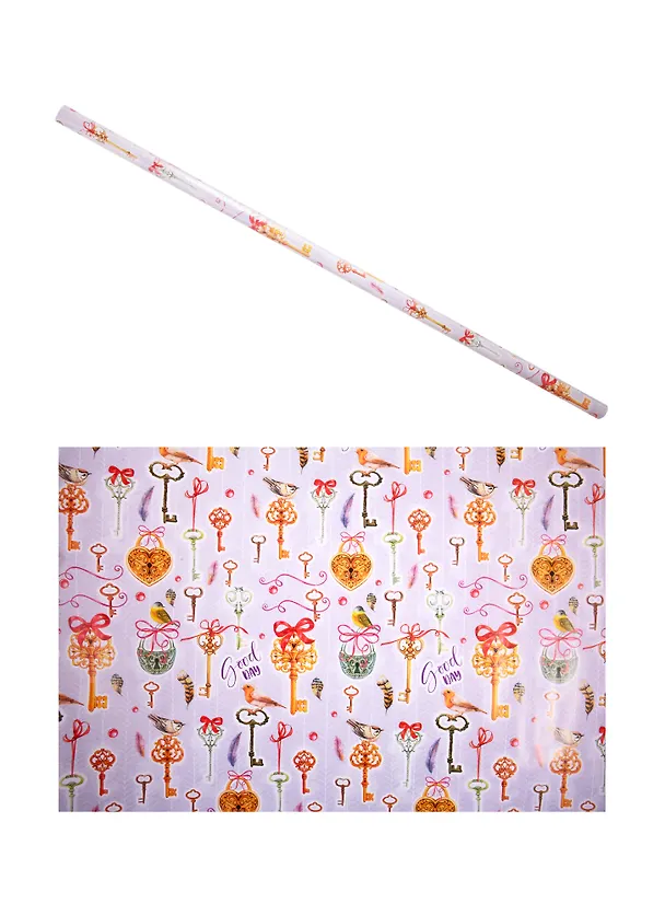 Бумага подарочная 80г/м, 100*70см Ключики мелованная с одной стороны, с полноцветным дек