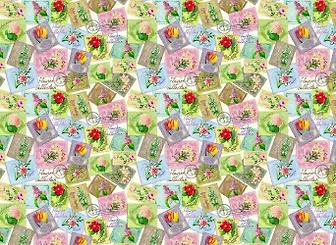 Упаковочная бумага Марки с цветами для сувенирной продукции в рулонах, мелованная с одной стороны, с полноцветным декоративным рисунком, плотность 80 г/м2/ 100х70 арт.75196