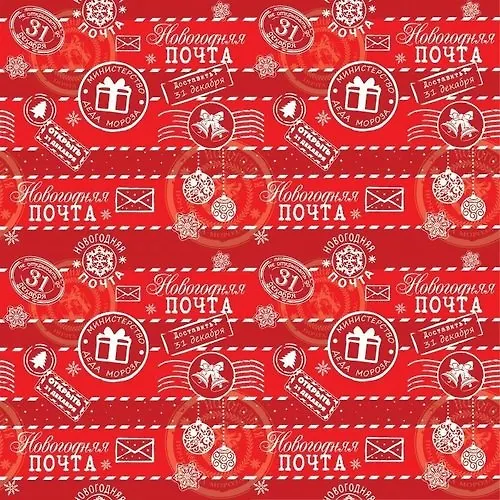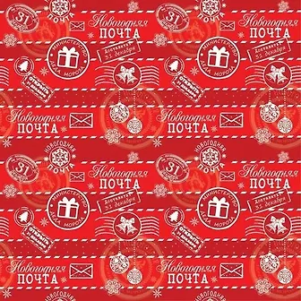 Упаковочная бумага Новогодняя Почта для сувенирной продукции в рулонах, мелованная с одной стороны, с полноцветным декоративным рисунком, плотность 80 г/м2 / 100х70 арт.75177