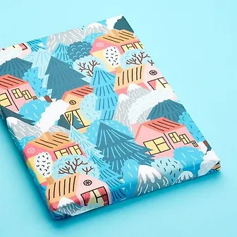 Упаковочная бумага с изображением домиков в снегу.