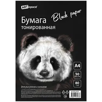 Бумага тонированная А4 50л ArtSpace 80гр черная, для эскизов и печати