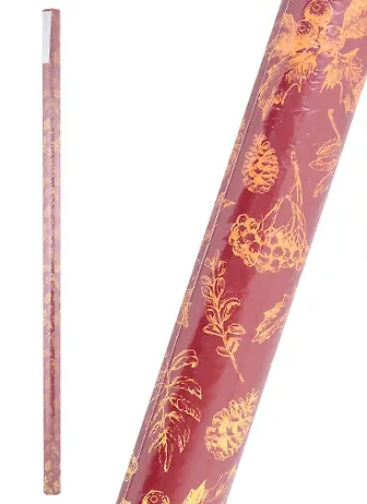 Упаковочная бумага очень хорошая- плотная. Орнамент (изображение на бумаге) очень красивый. Элементы золотых завитков на бордовом фоне смотрятся очень дорого, что придает упаковки определенный шик. Цвета яркие в меру. Данный товар можно приобретать не только на Новогодние праздники, но и на другие мероприятия подразумевание упаковочные элементы в подарках, так как на рисунок не имеет прямой отсылки.