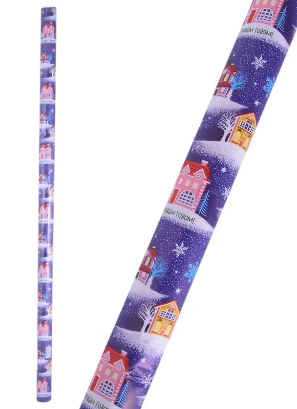 Бумага упаковочная 70*100см "Снежный город" суперглад., инд.уп.