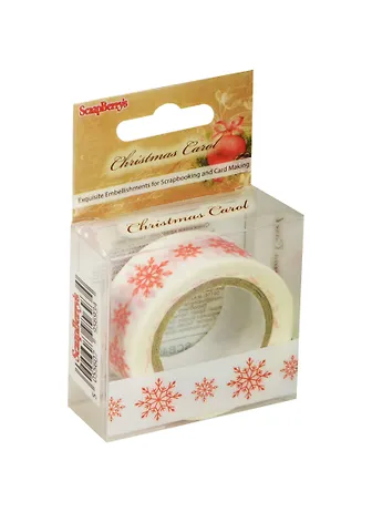 Бумажная клейкая лента с принтом Снежинки красные (SCB4905023) (15мм х 8м) (упаковка)