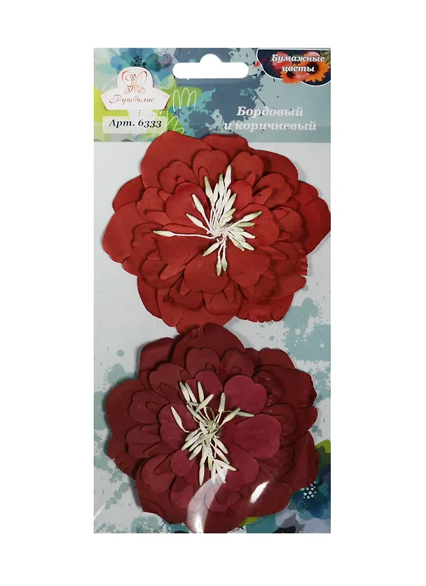 Бумажные цветы Бордовый и коричневый (6333) (2шт.) (Рукоделие) (3+) (упаковка)
