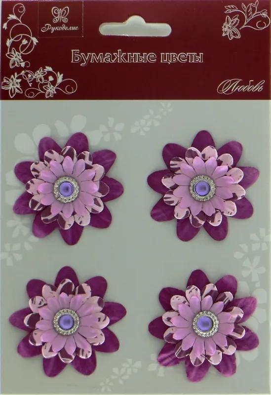 Бумажные цветы для ручн. творч. Любовь (L1815) (4шт) (Рукоделие) (упаковка)