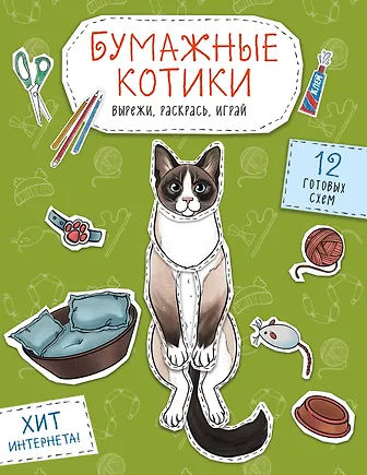 Бумажные котики. Вырежи, раскрась, играй. 12 готовых схем