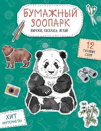Бумажный зоопарк (капибара, панда и др.). Вырежи, раскрась, играй. 12 готовых схем