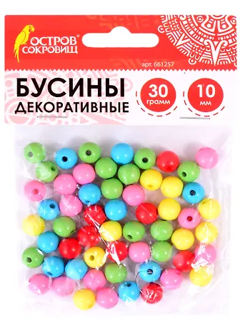 Бусины декоративные Шарики (10 мм) (30 г) (5 цв) (3+) (661257) (упаковка) (Остров сокровищ)