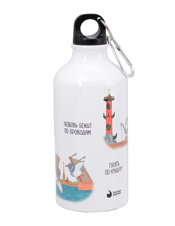 Бутылка с карабином СПб Петербург вдохновляет Чайки (коллаж, Ярошевская) (металл) (500мл) (БМ2025-56)