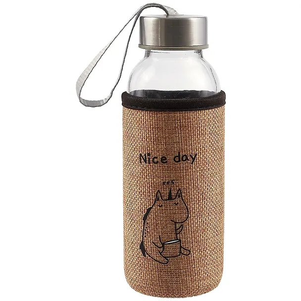 Бутылка в чехле джут Единорог/Коты (стекло) (300мл)