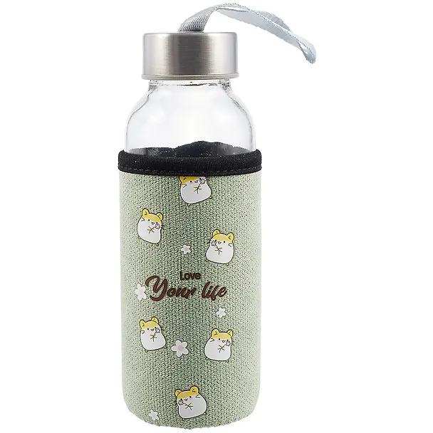 Очень хорошая ,а главное прочная бутылка. сделана из достаточно крепкого стекла и не разобьётся. отличная крышка, хорошо и плотно закручивается и не протекает. так же наимилейший бархатный чехольчик с хомячками. правда цвет пришёл не зелёный, а жёлтый, но это мелочи. главное, что ничего не протекает, можно спокойно положить в сумку, рюкзак.