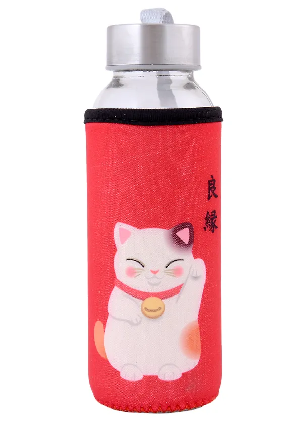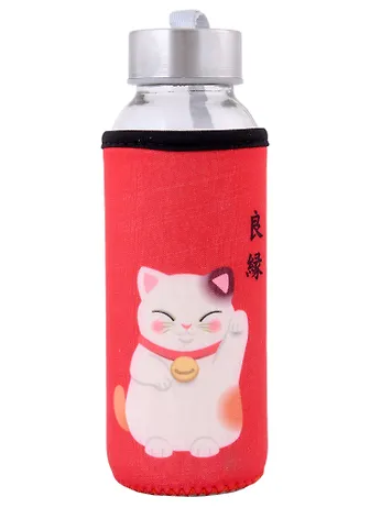 Эта стеклянная бутылка с изображением манэки нэко - моя любовь! 😍 Изображение манящего котика в японском стиле дарит элемент восточной эстетики и удачи. Через прозрачное стекло можно легко видеть содержимое, а герметичная крышка надежно сохраняет свежесть напитков. Я беру с собой бутылку на учебу, помимо воды иногда заливаю морсики))