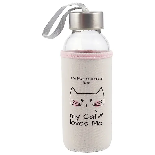 Бутылка в чехле с цветом My cat loves me (стекло) (300мл)