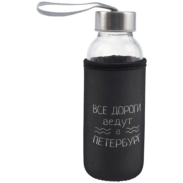 Хорошенькая, не большая стеклянная бутылочка. По объему слишком маленькая, как кружка, да и выполнена из прочного стекла, по весу тяжелая, поэтому носить ее с собой не рационально. Использую ее вместо кружки для чая или кофе. Кстати очень удобно, горячий напиток не так быстро остывает за счет того, что можно закрыть крышкой и есть чехол. Чехол кстати не только удерживает тепло, но и руку не обжигает, когда налита горячая жидкость.