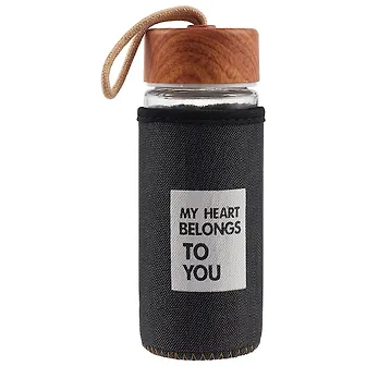 Бутылка в джинсовом чехле Надписи (стекло) (300мл) (12-07599-SK2OH193)