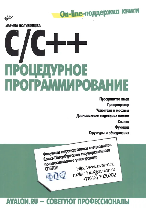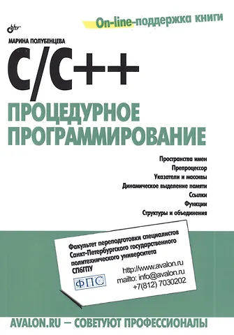 Подробно рассмотрены процедурные возможности языков программирования C/C++. Изложены основные принципы строения программы на языке C/C++: раздельная компиляция, функциональная декомпозиция, блоки кода. Описаны синтаксические конструкции языка и показана специфика их использования. Подробно излагаются понятия, связанные с представлением данных: виды данных, их представление в тексте программы, размещение в памяти, время существования и области видимости. Описано назначение и принцип работы препроцессора. Детально рассмотрены указатели и массивы, а также их взаимосвязь в языке C/C++. Приведена сравнительная характеристика ссылок С++ и указателей. Обсуждаются сложные программные элементы. Рассм