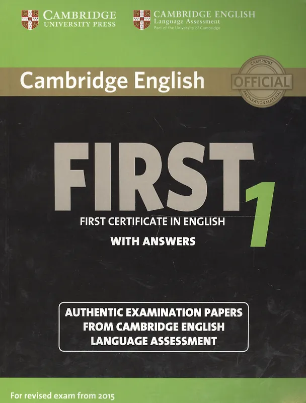 .Four authentic Cambridge English Language Assessment examination papers for the revised Cambridge English: First (FCE) exam from 2015. These authentic examination papers provide candidates with an excellent opportunity to familiarise themselves with the content and format of the updated Cambridge English: First (FCE) examination and to practise examination techniques. Visual material for the Speaking paper is included with each test, enabling students to prepare thoroughly for the interview.