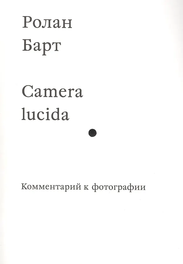 Camera lucida (лат. camera lucida, дословно «светлая комната») – вспомогательное оптическое устройство для рисования и копирования предметов в перспективе. Между глазами рисовальщика и листом бумаги располагается призма, установленная таким образом, что свет отражается от копируемого предмета и падает на бумагу, создавая на ней изображение. «Camera lucida. Комментарий к фотографии» (1980) Ролана Барта – одно из первых фундаментальных исследований природы фотографии и одновременно оммаж покойной матери автора. Интерес к случайно попавшей в руки фотографии 1870 г. вызвал у Барта желание узнать, благодаря какому существенному признаку фотография выделяется из всей совокупности изображений. Зада
