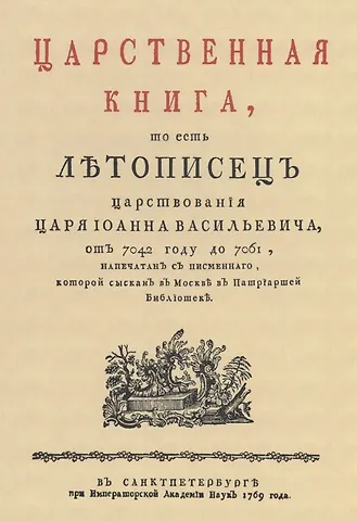Репринт с издания. СПб. При Имп. Акад. наук, 1769. Напечатан с Репринт с издания. писменнаго, которой сыскан в Москве в Патриаршей библиотеке. Царственная книга – одна из частей Летописного свода Лицевого, составленного по заказу Ивана IV Грозного. История России с 1534 по 1553 гг.