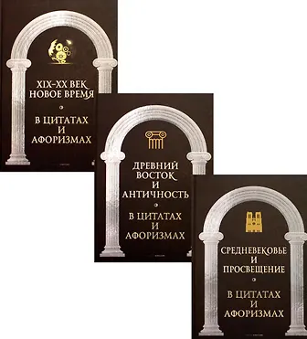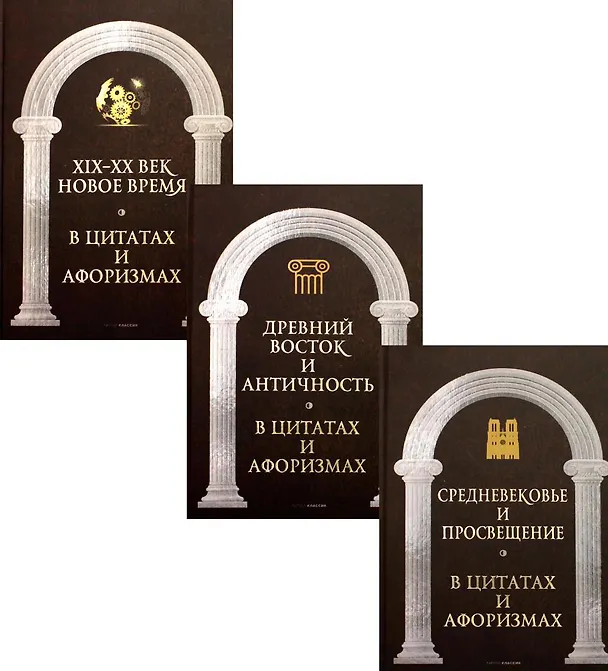Комплект "Царственное слово. Антология афоризма" содержит книги: "Средневековье и Просвещение в цитатах и афоризмах" Великие мысли великих людей навсегда остаются в человеческой культуре, помогая людям принимать важные жизненные решения, находить вдохновение для новых достижений и менять своё отношение к миру. Они становятся нашими девизами и путеводными звёздами, учителями и наставниками, опытом и мудростью. В этом сборнике вас ждут крылатые фразы Средневековья и Просвещения. "Древний Восток и Античность в цитатах и афоризмах" Однажды прозвучавшие, великие мысли великих людей навсегда остаются в человеческой культуре, помогая людям принимать важные жизненные решения, находить вдохновен