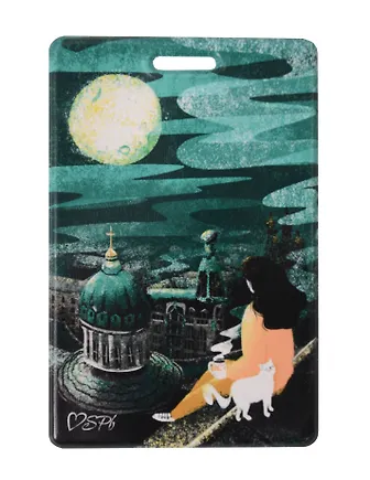 Полная луна зовёт гулять по крышам в компании белого кота – у принта современной художницы Дарьи Ноксо настроение уюта и мечтательности. Если и у вас такое же, то вертикальный картхолдер добавит романтики в вашу повседневную жизнь. В верхней части держателя есть отверстие, куда продевается лента. Аксессуар изготовлен из ПВХ с качественной печатью.
