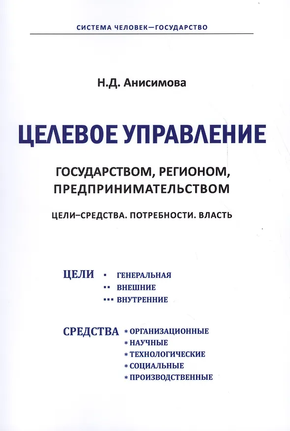 Надежда Анисимова «Целевое управление государством, регионом, предпринимательством. Цели - Средства. Потребности. Власть» и выбрать удобный способ его получения: самовывоз, доставка курьером