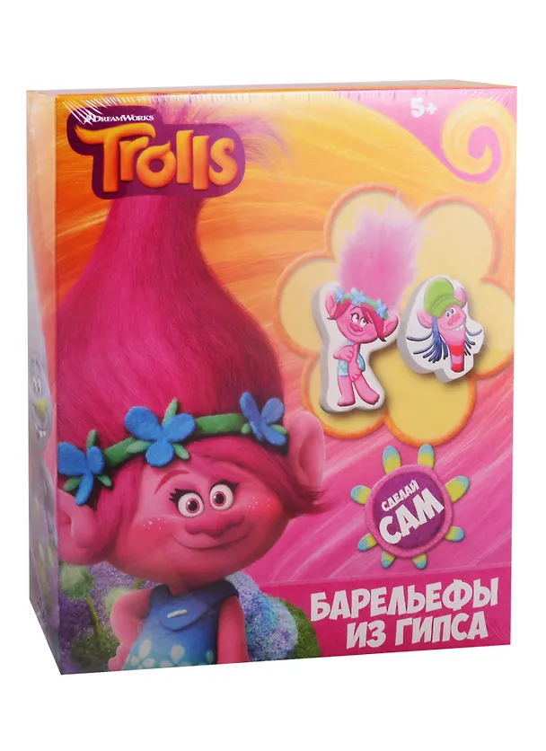 Набор барельефов из гипса "Тролли", в наборе: пластиковые формы, гипс, акварельные краски 6 цв, кисть, инструкция