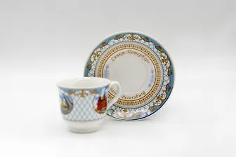 Индивидуальная коробка из картонакерамика, декольРазмеры кружки:высота- 5 смдиаметр- 6 смРазмеры блюдца:диаметр- 11 см