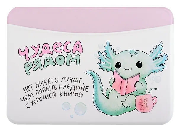 Я специально приехала в магазин в своем городе чтобы купить именно этот чехол для карточек, так как просто не могла его не купить пока он был в наличии. Этот чехол отличный выбор для книголюбов которые любят читать книги в тишине и одиночестве (прямо как я). Теперь я хочу купить другие товары с рисунком аксолотля. Единственное что меня напрягает, это то, что материал можно было сделать подороже, покрепче, чтобы чехол быстро не разорвался, не испортился. И я хочу чтобы было больше товаров с похожими надписями о книгах специально для книголюбов.