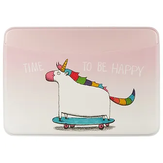 Чехол «Счастливый единорог» сделан из мягкого розового пластика. С каждой стороны на нём нарисован пухленький единорог на скейтборде. Этот забавный рисунок будет каждый день вызывать у вас улыбку.