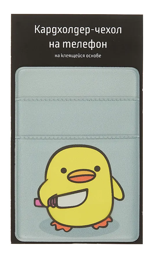 Пользуюсь карманом для карт на телефоне «Уточка с ножом» две недели. Взял из‑за мемного дизайна — реально поднимает настроение, и к нему часто подходят с вопросами. Печать четкая, не блекнет, материал мягкий и приятный, клей держит намертво, запаха резины нет.