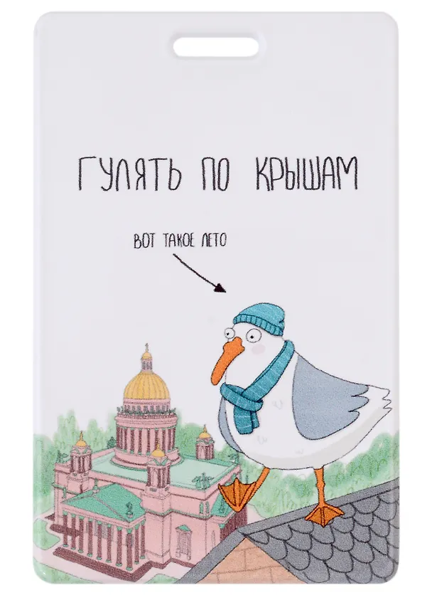 Хороший картхолдер, в котором удобно носить проездную карточку. В картхолдер вмещаются карточки стандартного размера. Он приятный по качеству, плотный, края не рвутся и не расходятся. Принт пропечатан хорошо: с одной стороны изображена забавная птичка и Исаакиевский собор, с другой стороны однотонный нежно-зеленый цвет