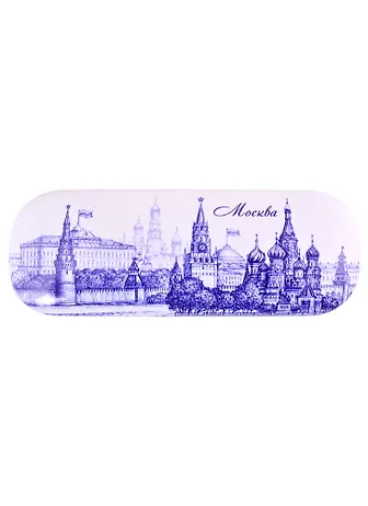 Приобрела чехол для очков “Москва гжель” в подарок. Дизайн в традиционном русском стиле с элементами гжельской росписи. На крышке изображён силуэт Москвы с узнаваемыми достопримечательностями: храмом Василия Блаженного, Спасской башней и Кремлёвской стеной.