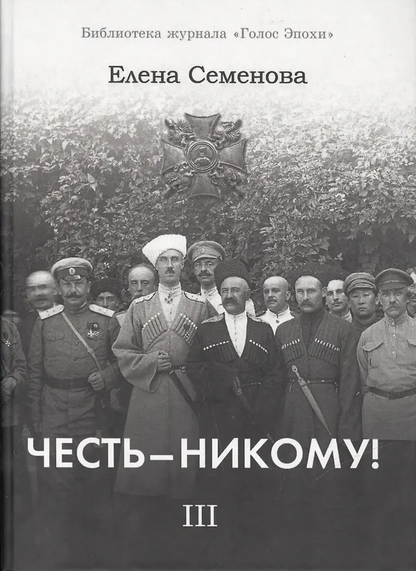 Книга Елены Семеновой «Честь - никому» - художественно-документальный роман-эпопея в трёх томах, повествование о Белом движении, о судьбах русских людей в страшные годы гражданской войны. Автор вводит читателя во все узловые события гражданской войны: Кубанский Ледяной поход, бои Каппеля за Поволжье, взятие и оставление генералом Врангелем Царицына, деятельность адмирала Колчака в Сибири, поход на Москву, Великий Сибирский Ледяной поход, эвакуация Новороссийска, бои Русской армии в Крыму и её Исход... Роман раскрывает противоречия, препятствовавшие успеху Белой борьбы, показывает внутренние причины поражения антибольшевистских сил. На страницах книги читатель встретится, как с реальными исто