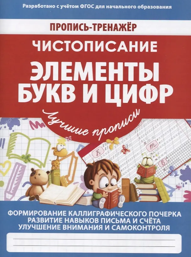 Вашему вниманию предлагается пропись-тренажер "Чистописание.Элементы букв и цифр". Пропись поможет сформировать каллиграфический почерк, развивать навыки письма и счёта, способствует улучшению самоконтроля. Разработана сучетом ФГОС для начального образования.