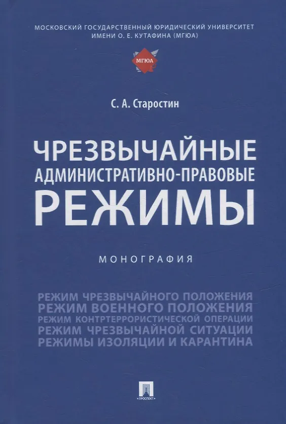 Монография посвяшена одной из важнейших проблем государственного управления в чрезвычайных ситуациях - проблеме правового регулирования и организации обеспечения чрезвычайных административно-правовых режимов. В ней не только рассмотрены такие режимы, но и приведена их классификация, даны ответы на вопросы, почему эти режимы названы чрезвычайными, а не какими-либо иными режимами - особыми, специальными, экстраординарными и т. п.